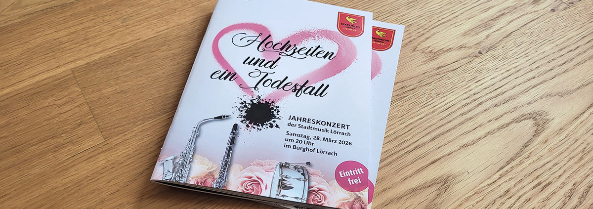 /in Allgemeine News /von adminDas Programmheft zum Jahreskonzert 2026 ist erschienen und verrät auch den Titel des Konzertes: „Hochzeiten und ein Todesfall“ Neben Informationen zum Konzert berichtet die Stadtmusik auf den insgesamt 52 Seiten […]