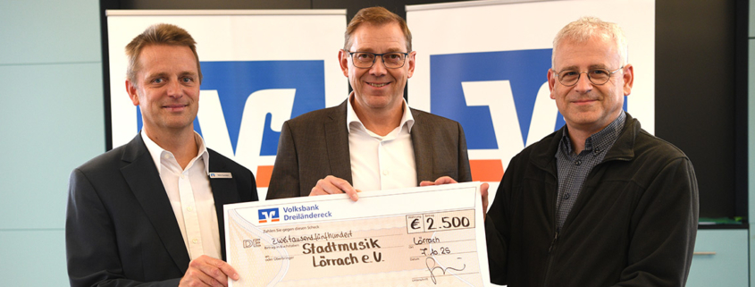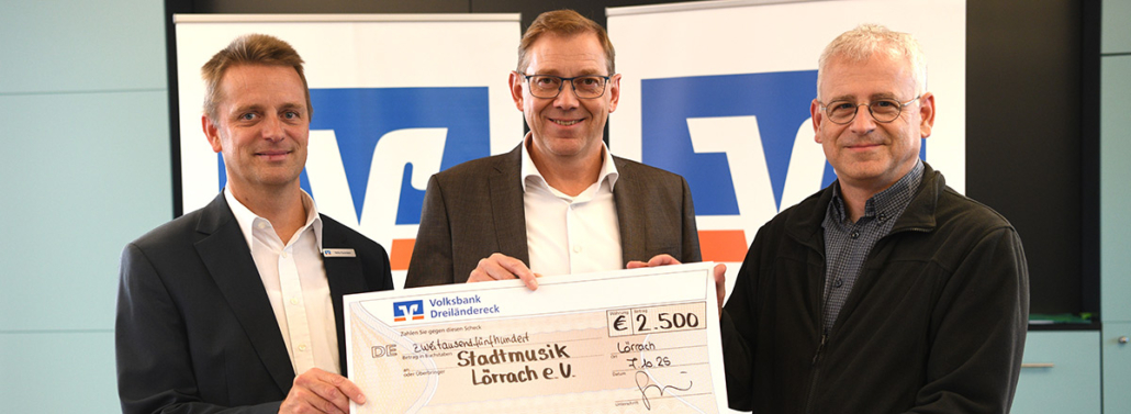 Die Volksbank Dreiländereck würdigt  zum dritten Mal nach 2020 und 2022 das ehrenamtliche Engagement ihrer Mitarbeitenden. Insgesamt 55.000 Euro fließen in Form von Spenden an regionale Vereine, in denen die Mitarbeitenden selbst aktiv sind.  Im Rahmen einer feierlichen Veranstaltung im Dachgeschoss der Hauptstelle wurden am 7. Oktober 22 Mitarbeitende für ihr Engagement in ihren Vereinen mit einem Preisgeld von jeweils 2500 Euro ausgezeichnet. Heiko Kussmann, seit Jahrzehnten in der Stadtmusik als Klarinettist und phasenweise im Vorstand aktiv, war einen von ihnen. Die Stadtmusik Lörrach freut sich sehr über die großzügige Zuwendung und dankt herzlich.